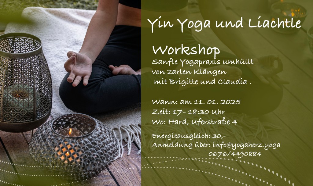 Yin Yoga und Liachtle umhüllt von zarten Klängen am 11.1. 25 von 17 – 18:30 Uhr Energieausgleich 30.-